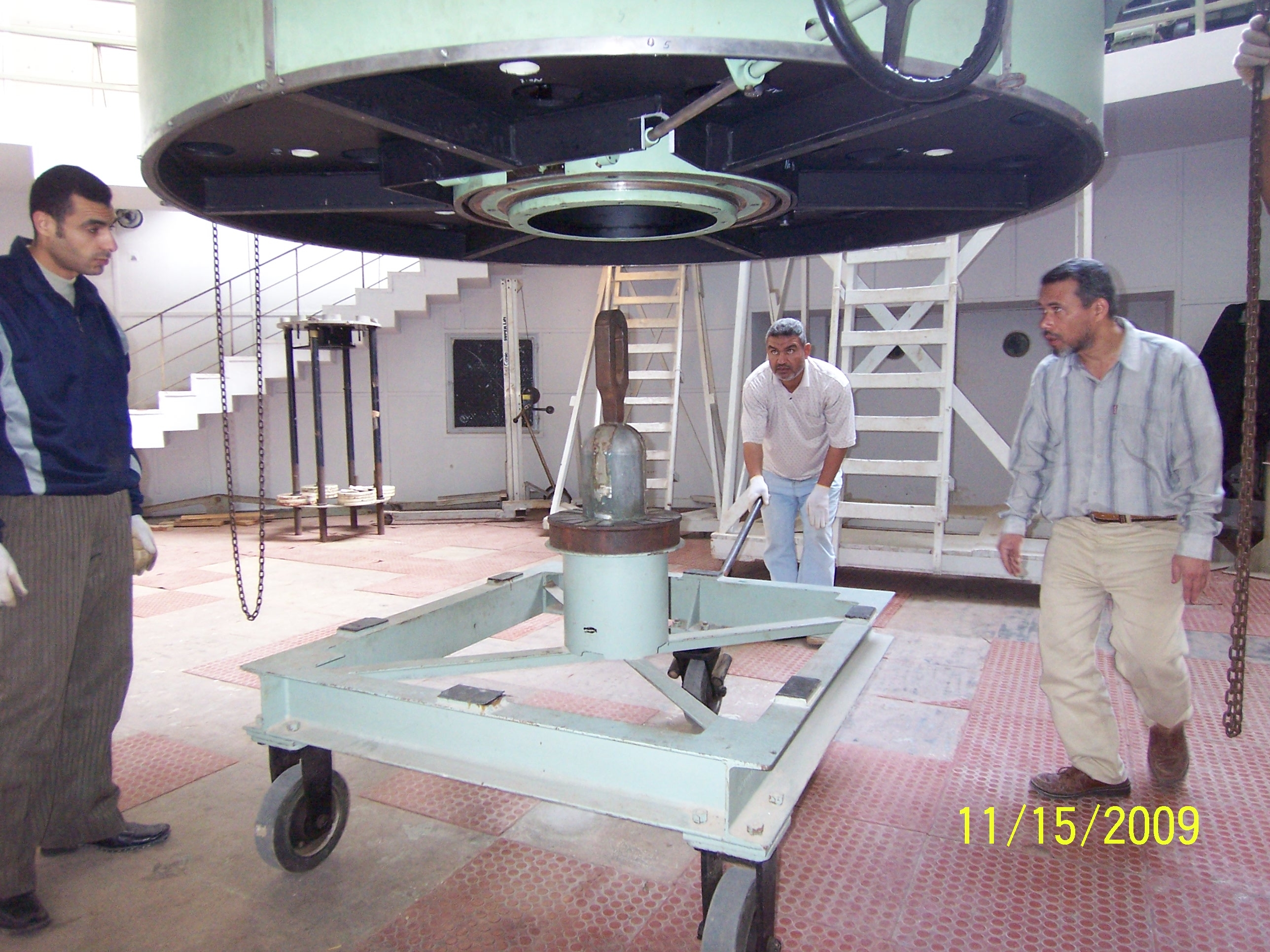 主鏡セルを受け台車の上にそーっと下ろす
