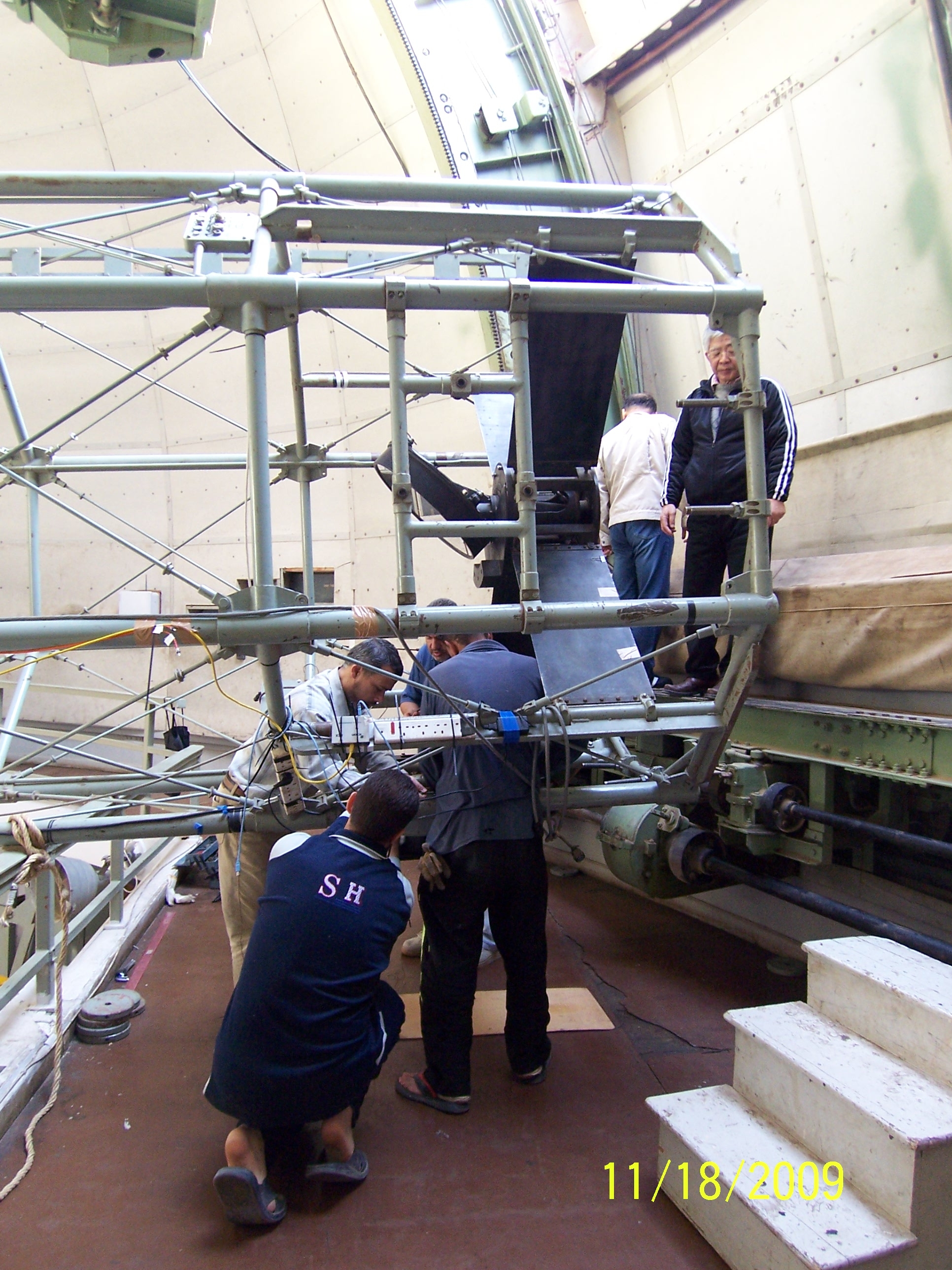 望遠鏡ニュートン焦点部移動作業中