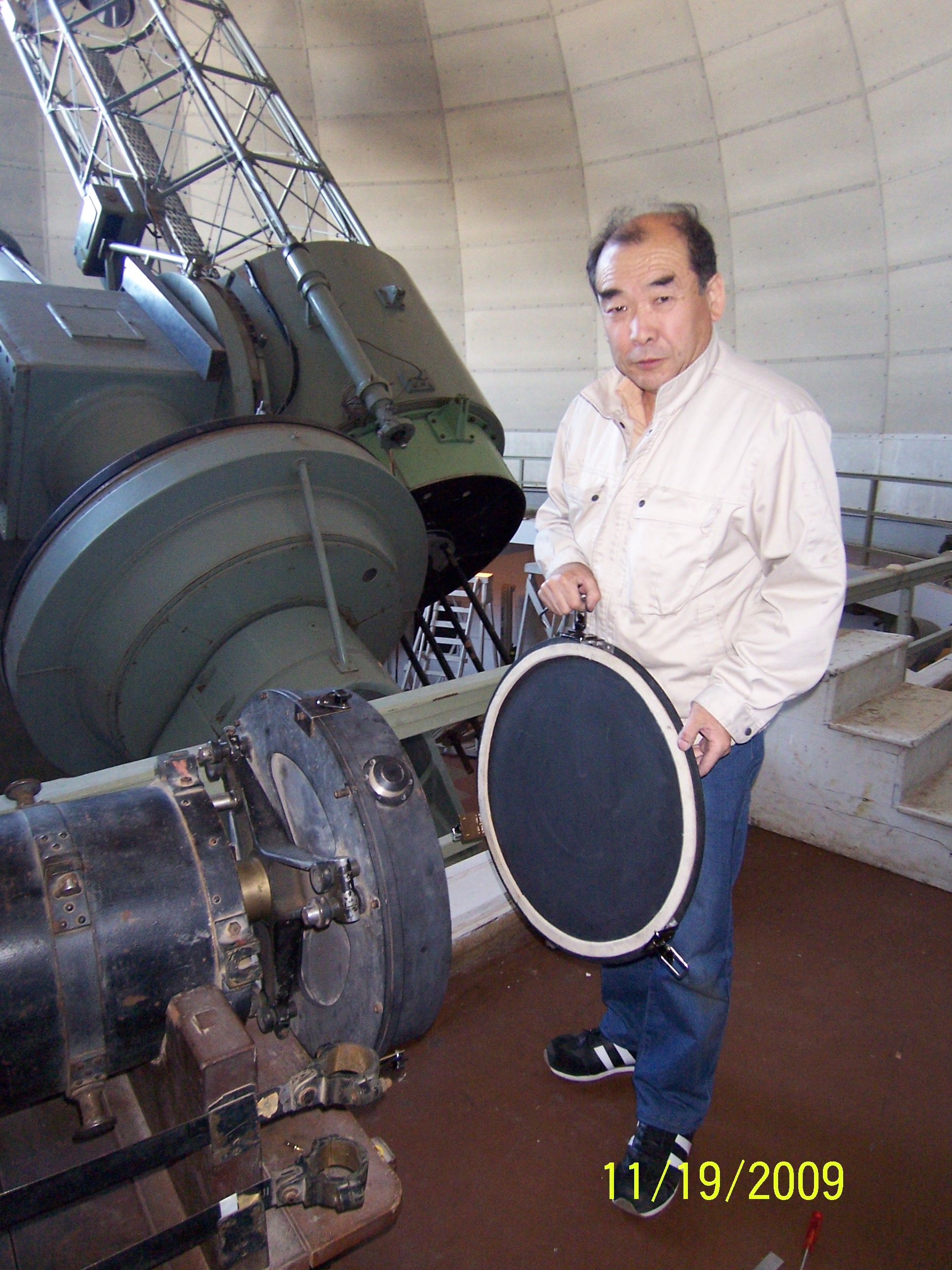 カセグレン副鏡カバーの留め具交換作業中の小矢野さん
