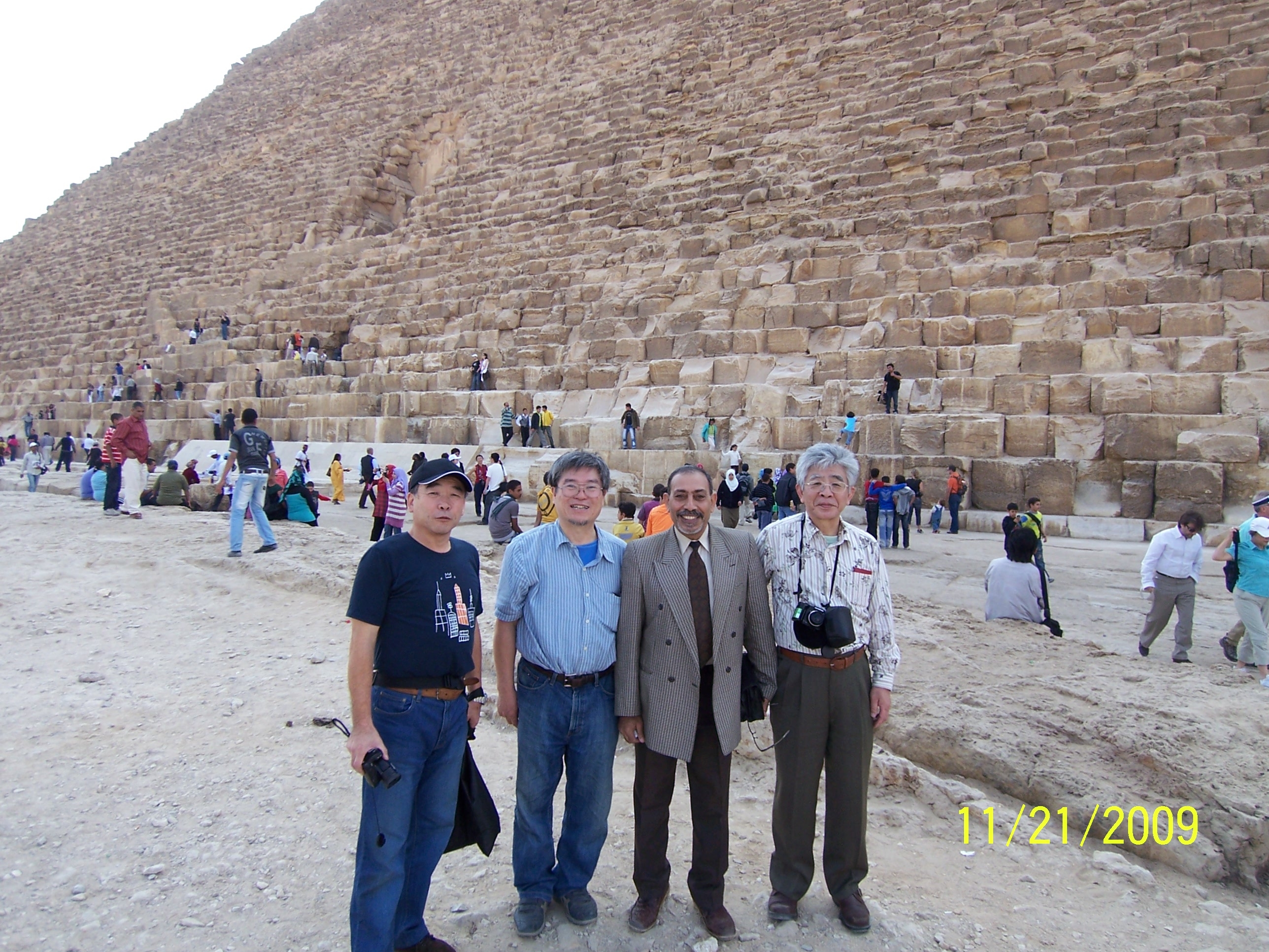 ギザのクフ王のピラミッド前で記念撮影