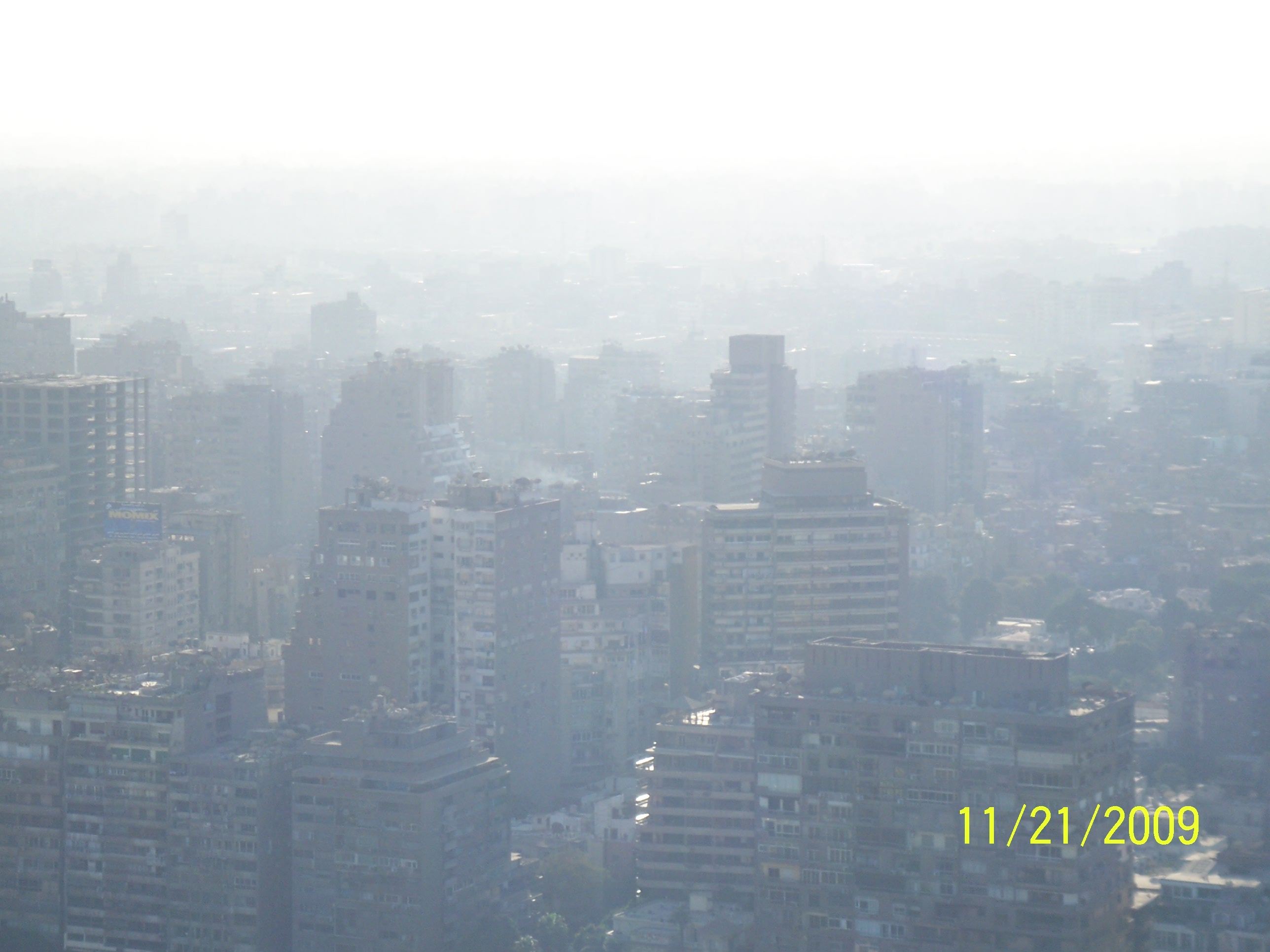 カイロタワーからギザのピラミッド方向をねらったのだが、フォッギーでした