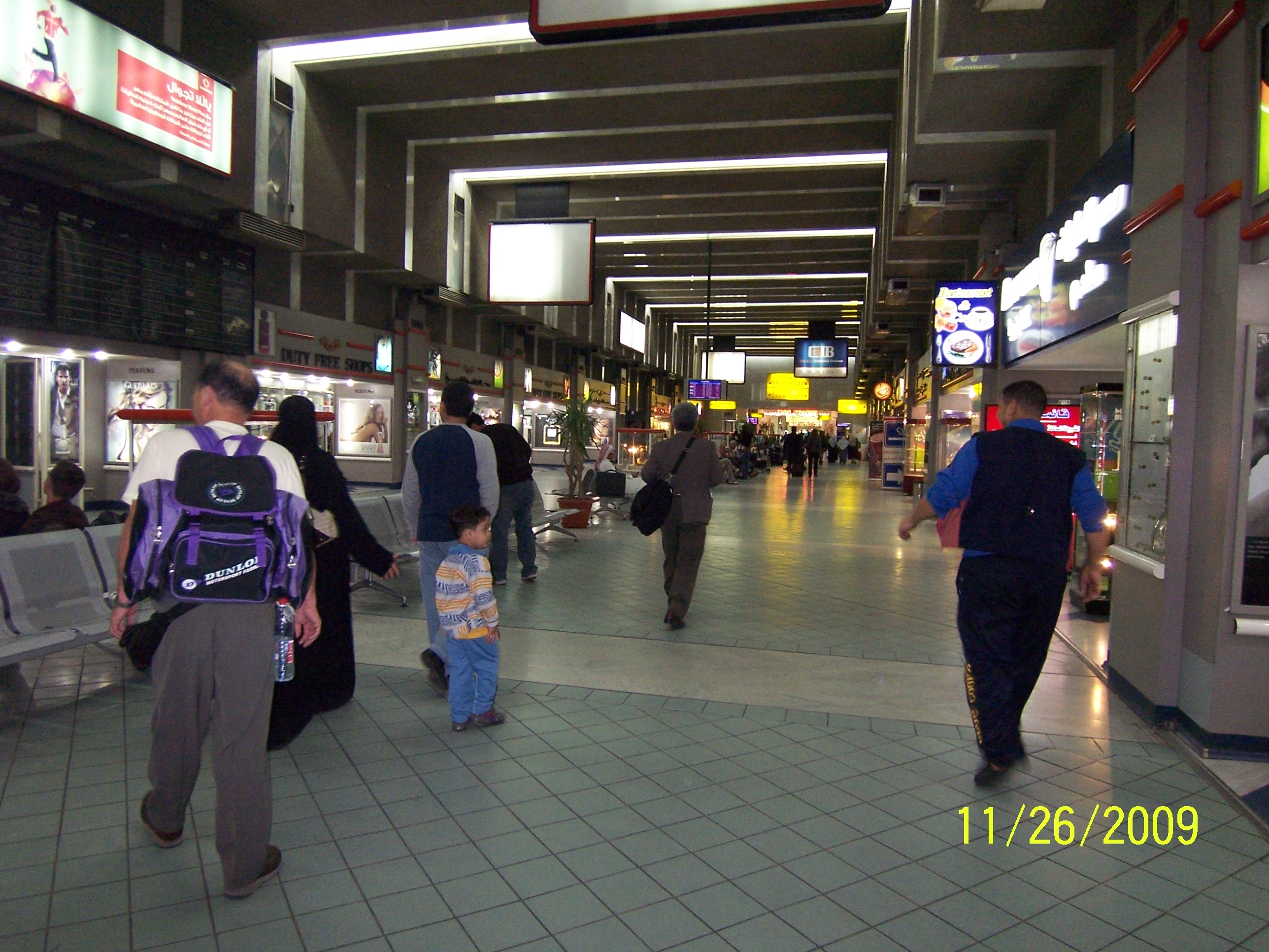 帰路のカイロ空港:お土産を物色する小矢野さんとその前に野口さんの後ろ姿