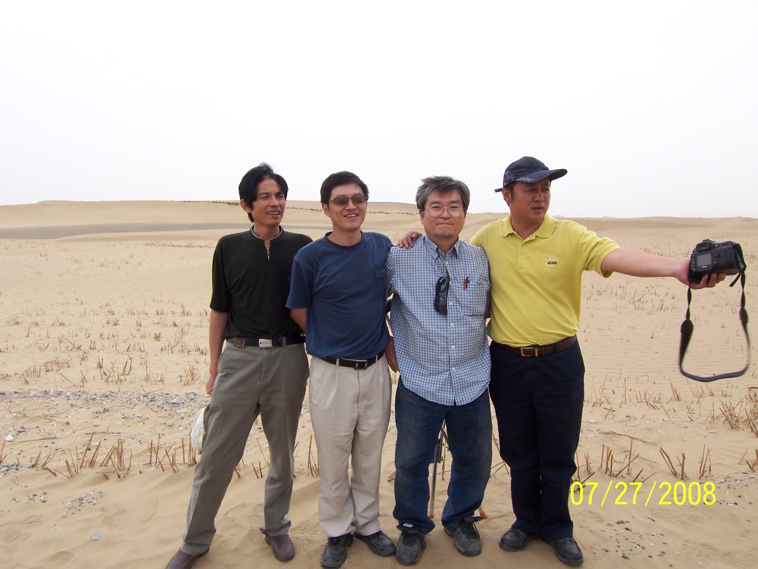 Wang-san, Yao-san, Sasaki, Zhou-san on Taklamakan desert.