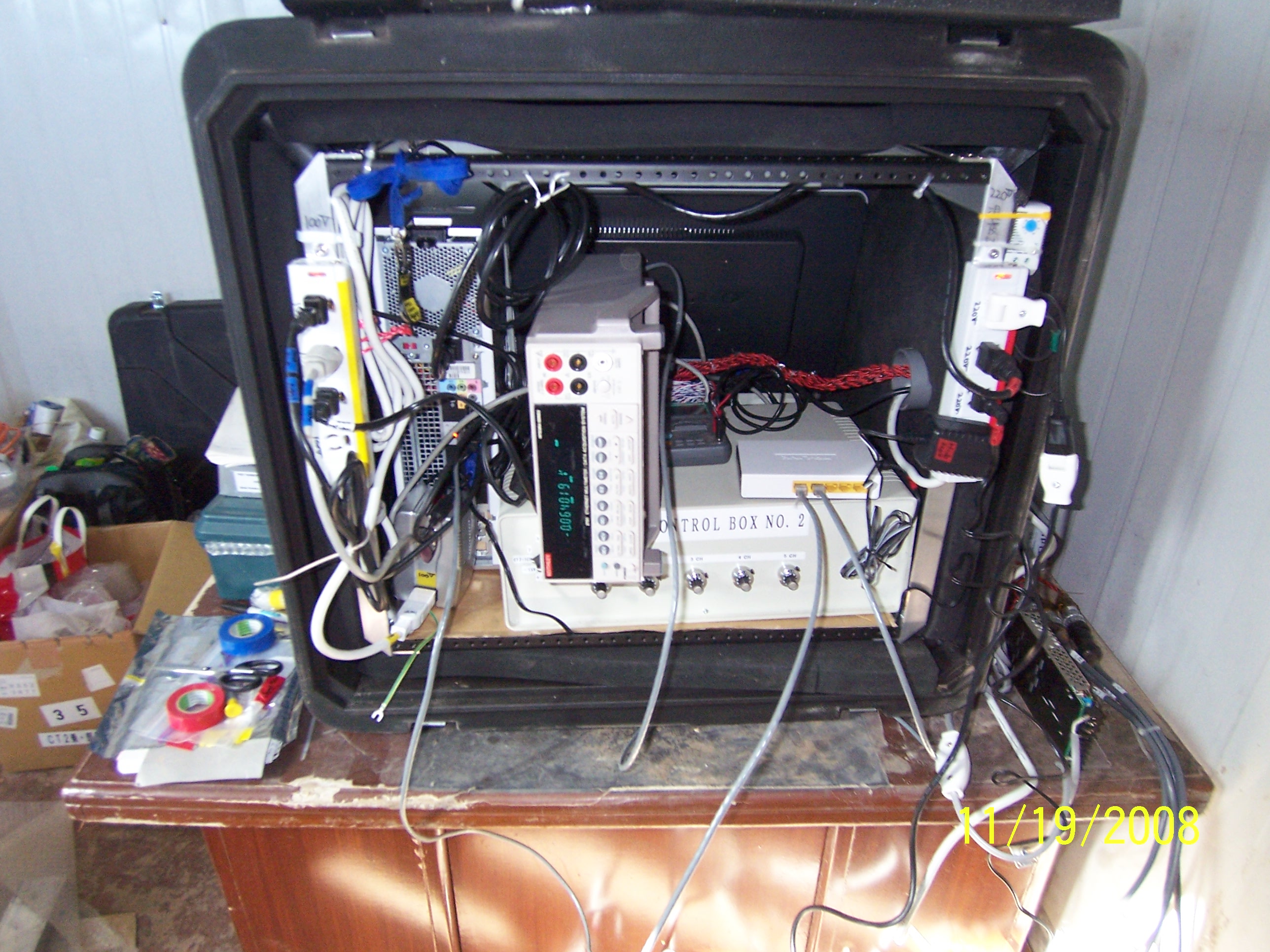 PC, Keithley DMM, CT2 controller, Lan Hub (left to right)