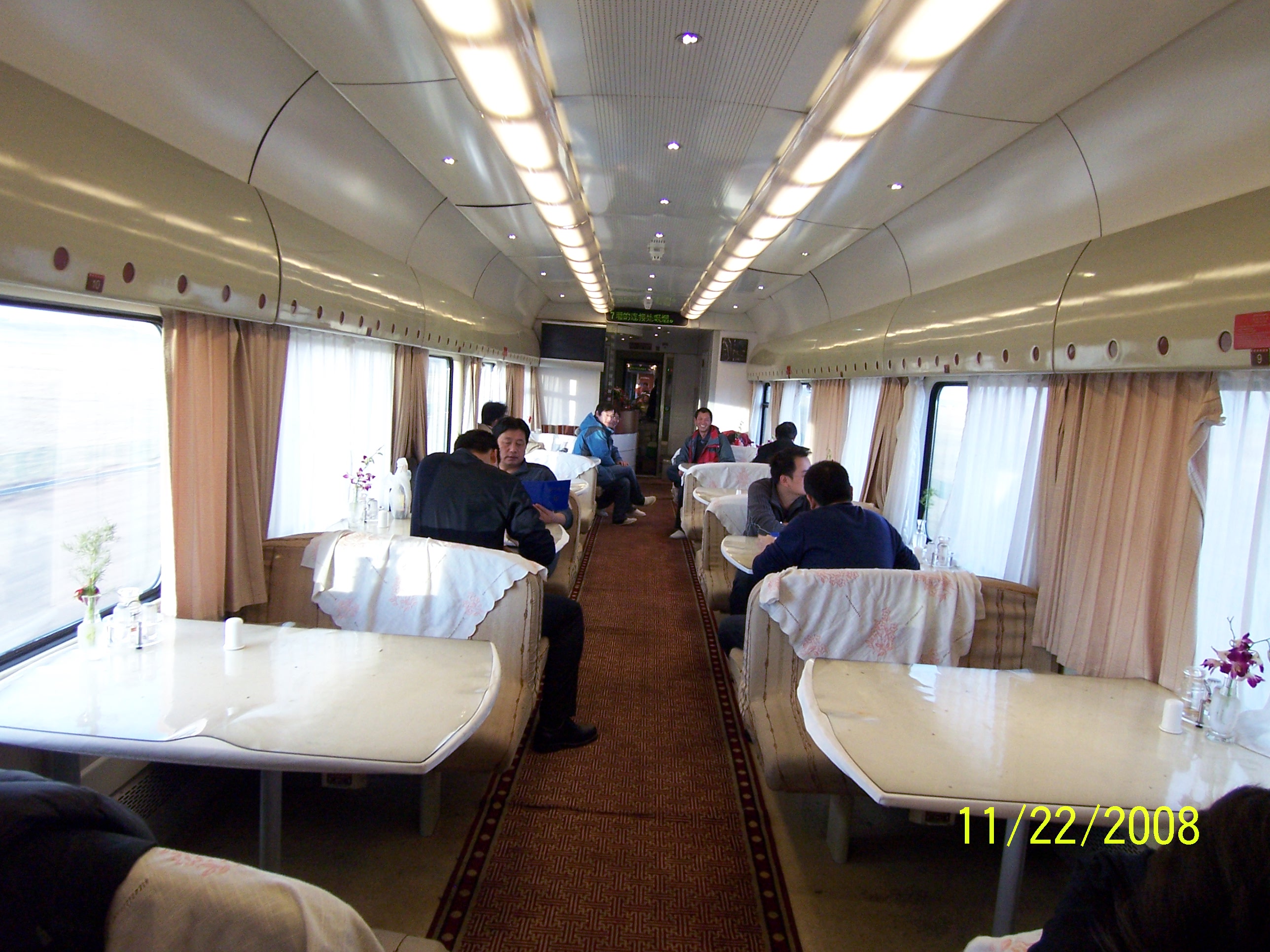 dining car in Tibet train, Mr. Ma and Mr. Yu on the far seats