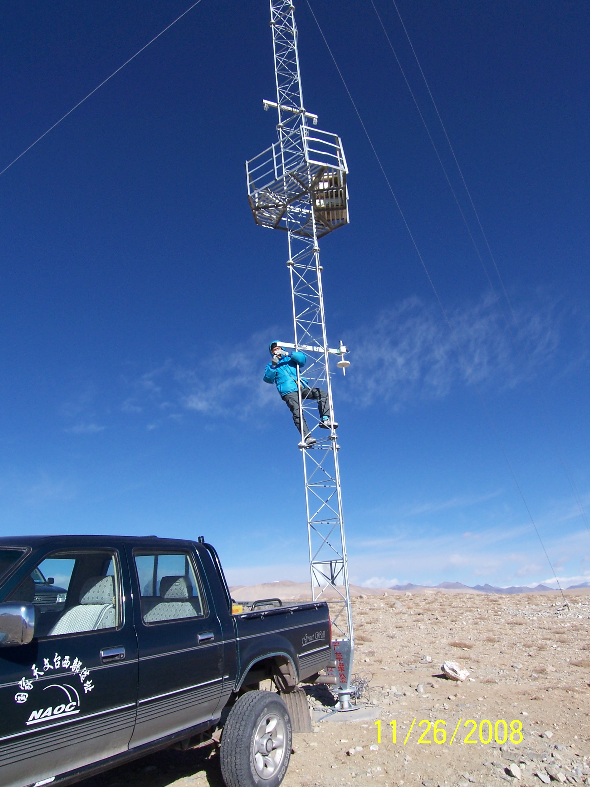 Mr. Oshima trying to install weather station WXT510 on one of stays at Karasu-B